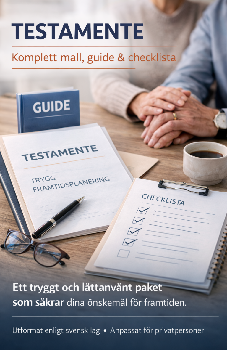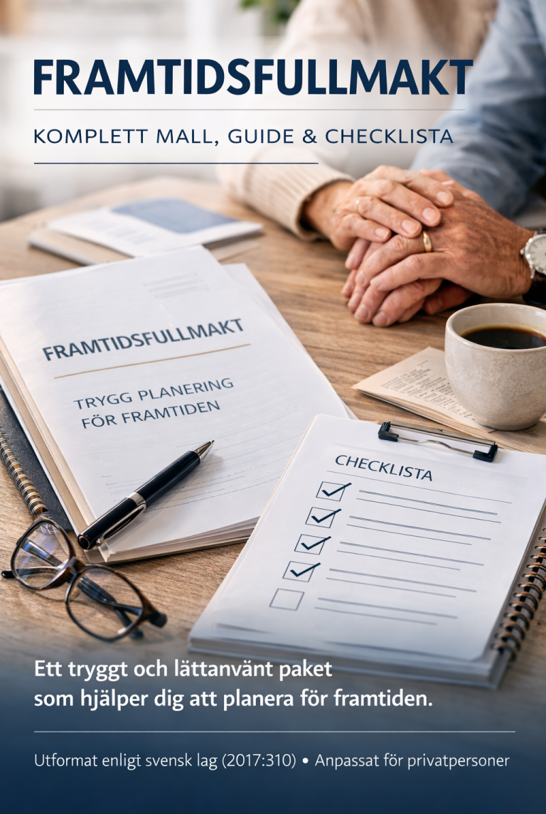 Ett tryggt och lättanvänt paket som hjälper dig att planeraför framtiden. Utformat enligt svensk lag (2017:310) och anpassat för privatpersoner.